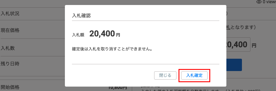 4.入札額を確認して、問題なければ「入札確定」をクリックします。