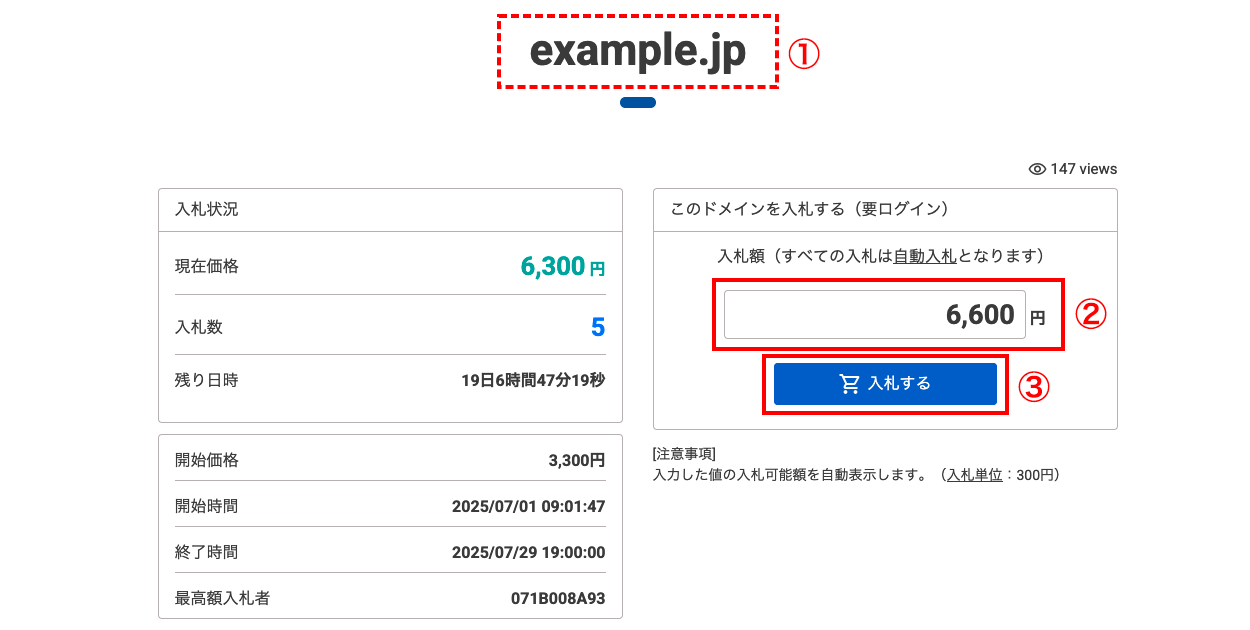 - 他の方が高額入札した場合、その方が落札者となりますのでご了承ください。