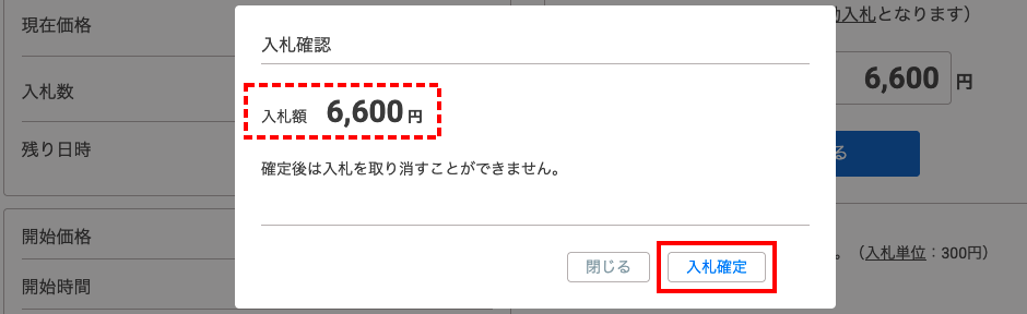 4.入札額を確認して、問題なければ「入札確定」をクリックします。