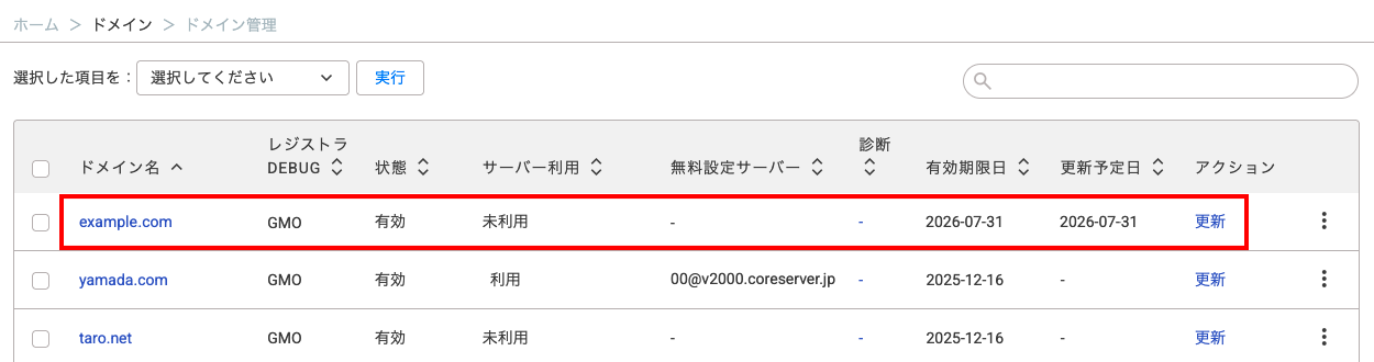 3.ホーム画面の「ドメイン」>「ドメイン管理」をクリックします。