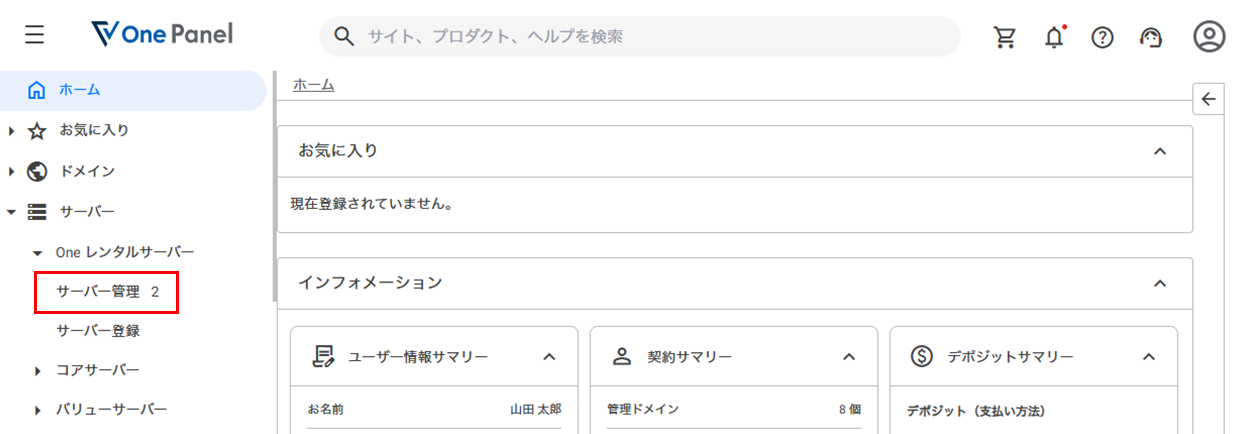 1.ホーム画面の「サーバー」>「One サーバー」をクリックします。